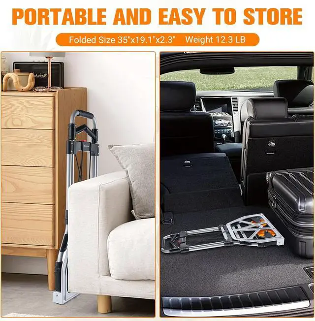 Convenient and Effortless: This foldable hand truck requires no assemblyjust unfold it and adjust the handle to get started. Weighing only 12.3 lbs, this 2 wheel dolly is easy to operate, allowing you to begin your moving tasks quickly and effortlessly, saving both time and energy