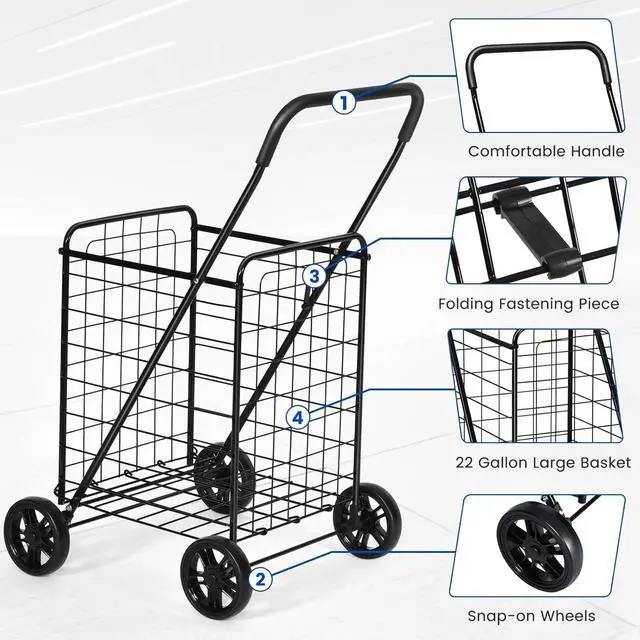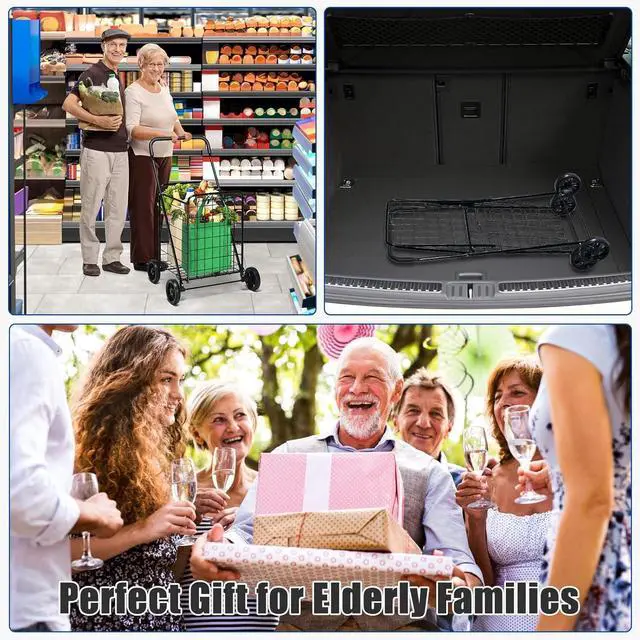 Sturdy Material with Heavy Duty Construction: Made of heavy-duty steel, this utility shopping cart is well-welded and sturdy to hold heavy items without tipping over and can hold up to 100 pounds. No more pain in the back from carrying heavy groceries, which is a perfect gift for seniors.