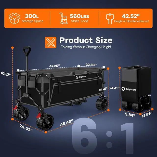 & folding carts unfolded size: 48.43" x 24.02" x 24.41" ( 42.52" ), folded size 9.84" x 12.99" x 24.41", wheel size7"x 4", handle height from