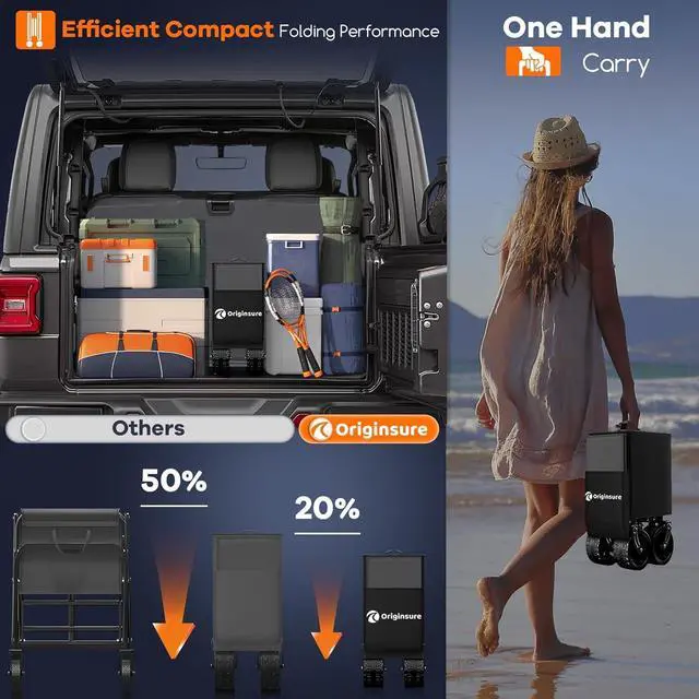 & This foldable cart features an stable tive steering mechanism structure, Restoring the swaying 3-point handle-frame connection, resolving the probs of swaying side to side, loss of control, and steering difficulties of similar carts, significantly d stability and maneuverability. A rebound adjustable handle with the lock can be freely adjusted in length, suitable for all types of people.