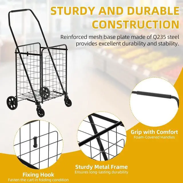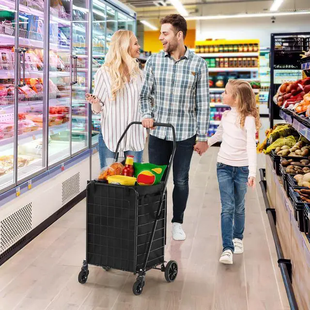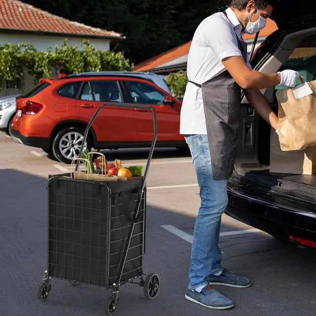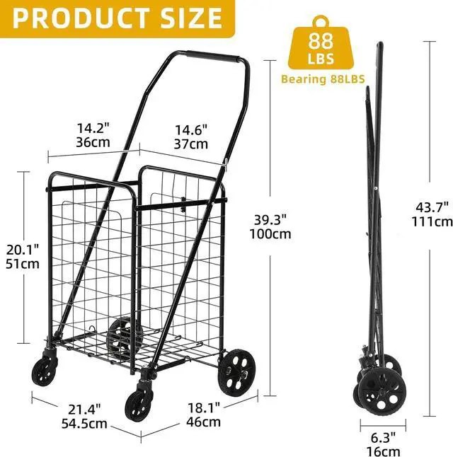 Durable Rotating Wheels: Heavy-duty polyprone wheels ensure smooth movement across uneven surfaces, making it great for sidewalks, stores, or indoor use.
