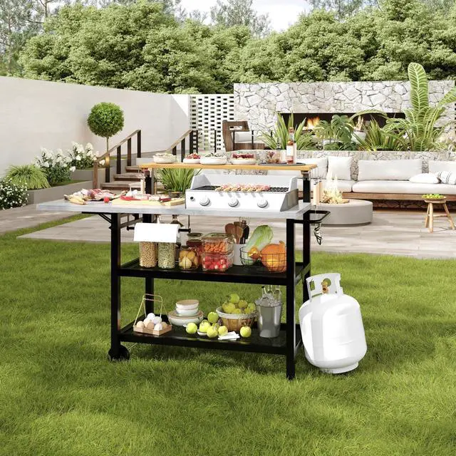 Ample Workspace & Smart Features: With a 1200sq. in. large work surface as a bbq table, features tool hooks, gas cylinder hook, foldable side table, tissue holder and so on