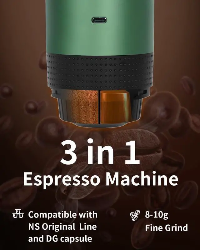 Brewer & One-Button Operation: Whether you prefer ground coffee or NS capsules, this mini coffee maker is versatile enough to brew both. Simply press one button, and within 3-4 minutes, youll enjoy a perfect espresso shot, hassle-free.