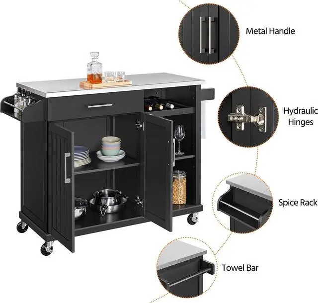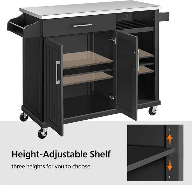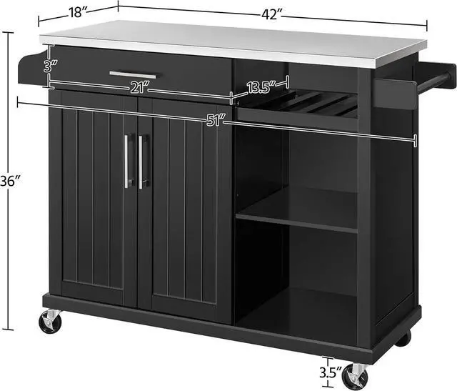 MUST-HAVE MOBILITY: This mobile kitchen island sits on 4 caster wheels that offer effortless maneuverability. With a four-wheel base, it can go anywhere you need it and the 2 locking casters can keep it in place when you dont want it to move.