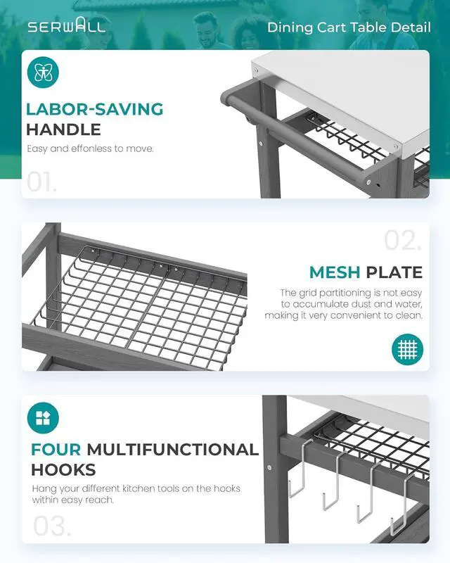 Simple Assembly: This grill cart is designed for hassle-free setup with pre-assembled parts and clear instructions. Get your Outdoor Grill Cart ready in no time and start enjoying outdoor meals quickly.
