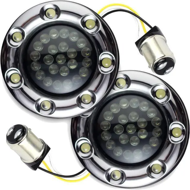 FITMENT: All Harley Davidson motorcycles with 2" Bullet style front turn signals. Will fit other makes that use 2" turn signals with 1157 bases. Older models may experience hyper flash which can be corrected by installing load resistors (PN: EL60WR)