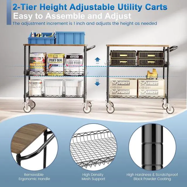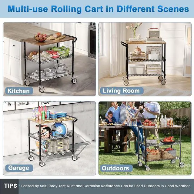 Easy to Assemble: All parts are in the package, and no tools are required to assemble. This rolling carts with wheels measures 30"L x 18"W x 33"H (without handle); with handle will be 34.75"L x 18"W x 33"H. If you have any questions about the product, please feel free to get in touch with us. wishes you a happy life.