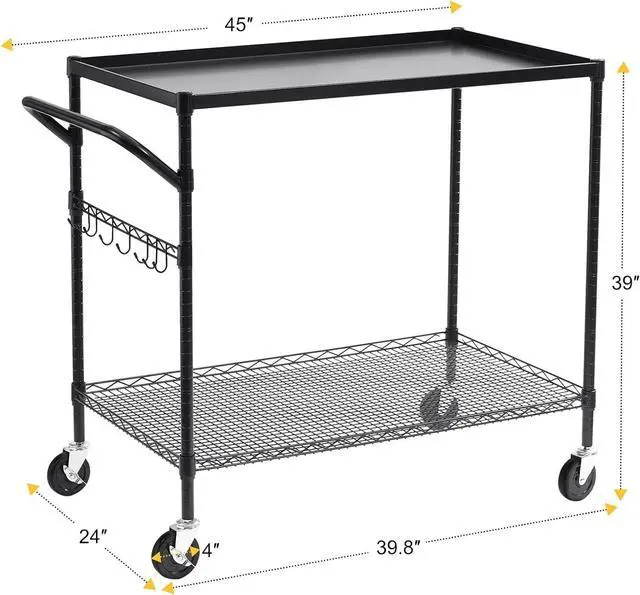Easy Assembly & Dimension & Satisfied Service: This durable rolling utility cart measures 24"D x 39.8"W x 39"H/ 24"D x 45"W x 39"H (with handle). Easy to assemble in 15 minutes, no tools required. We provide 90DAYS No-excuses refund & 3YEARS aftermarket service. Any questions about the utility carts with wheels please contact us, we will reply in 24Hours.