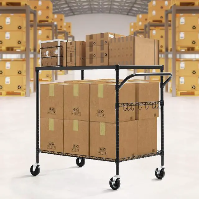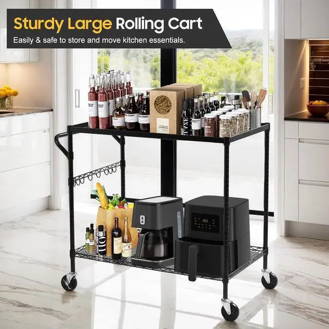 Multifuncation & Widely Application Wire Cart: This 2 tier metal utility cart is easy to store and transport, great for storing and transporting the heavy and bulky loads. It perfect be used as kitchen cart, food cart, serving carts, bar carts, snack cart, tool cart, work cart, beverage cart, shopping cart and more. Ideal for storage in kitchen, warehouse, garage, office, laundry room, and restaurant.