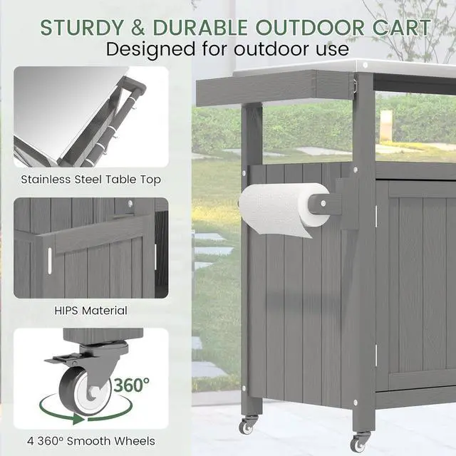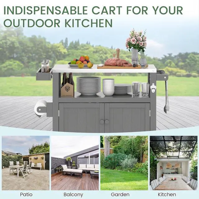 Versatile Applications Our outdoor cart can be used with a bbq grill, pizza oven, frying pan, etc., or serve as a prep table and food cart. It is an essential piece of furniture for outdoor cooking and parties, perfect for patios, outdoors, poolside, beachside, and other outdoor locations, and it can also be used indoors.