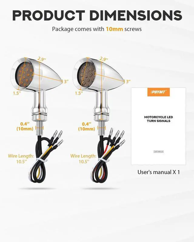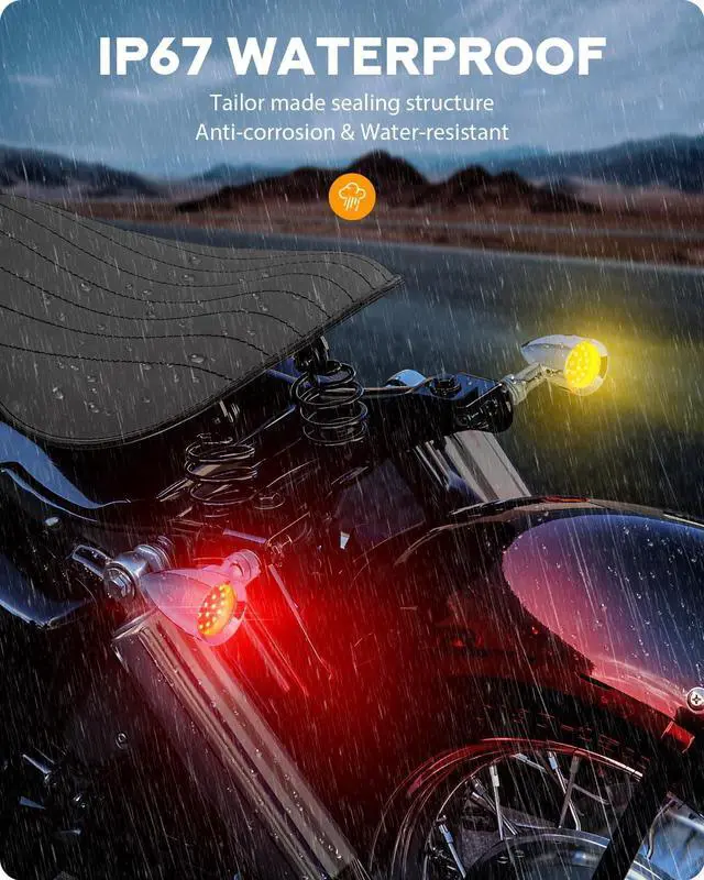 VARIOUS APPLICATION - The bullet turn light is a versatile lighting solution designed to fit a wide range of applications, including motorcycles, eBike and more. With its IP67 waterproof, these LED motorcycle turn signals are made to withstand harsh weather conditions such as rain, fog, and even extreme environments.