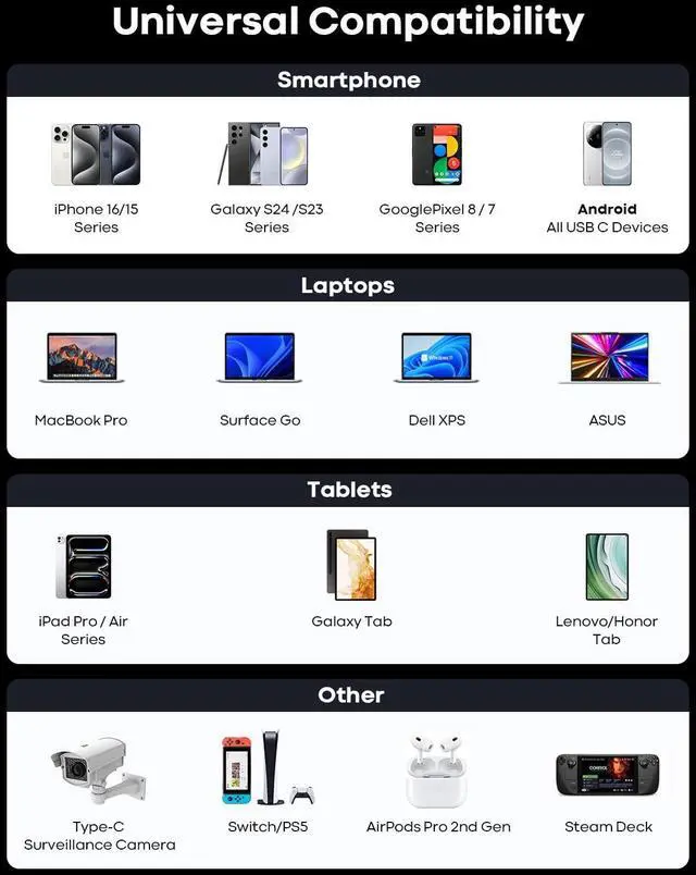 WIDELY COMPATIBLE: The usb to usb c cable 50ft works perfectly with Galaxy Note, LG, Moto, Pixel, and many other USB-C smartphones and tablets.