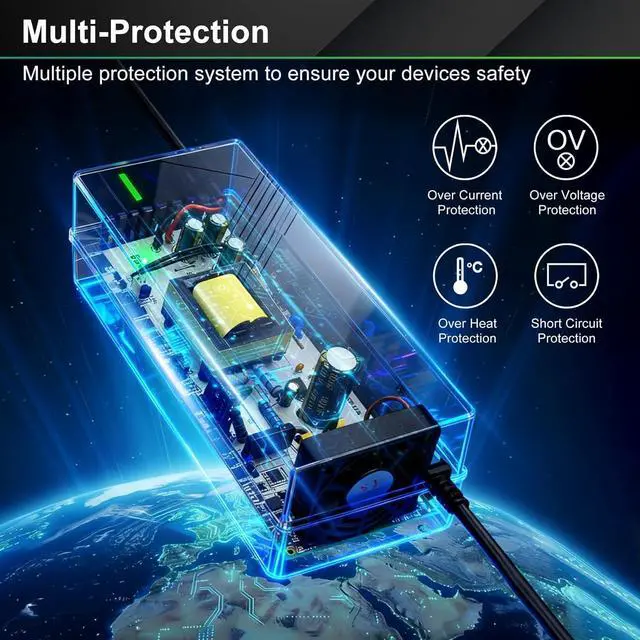 Safe: Certified by FCC CE ROHS. We focus on premium quality and safe power adapters. The power converter is made of insulating materials, ABS refractory materials, and pure copper power cord. Built in multiple safety protections, such as overload cut-off, over voltage cut-off, over temperature cut-off, and short-circuit cut-off