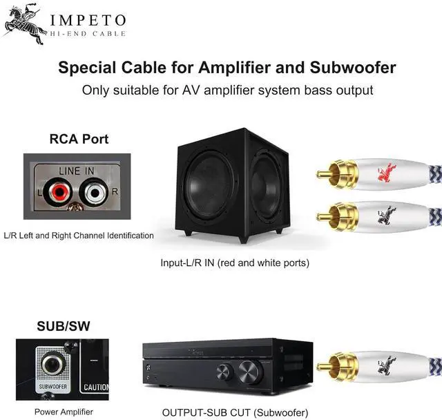 Exclusive for AV Receiver SUB Ports: This cable is optimized solely for connecting red/white RCA subwoofer outputs from AV amplifiers to active subwoofers. Not compatible with other audio devices or speaker-level inputs.