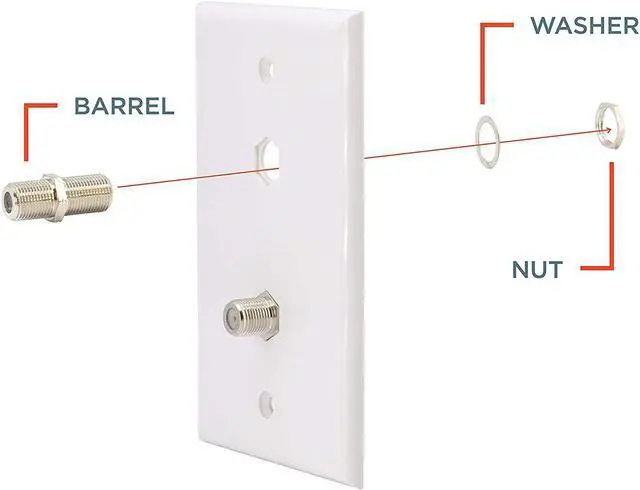 Accommodates F-Type Connector Pins: RG58, RG59, FG6, and RG11 coaxial (750hm) Cable with wall plates for indoor and outdoor use