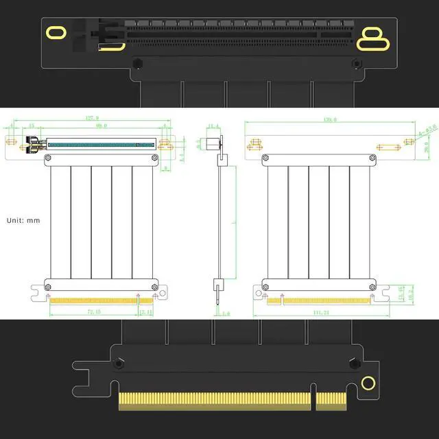 PCIe 3.0 X16 GPU Riser Cable Length 300mm, Female 90 Degree Angle, Compatible with Gen 3 GPUs, Such as GTX1080, RTX2060, RTX2070, RTX2080, RTX2080Ti, etc. (PCIE30-X16-1000MM-90D)