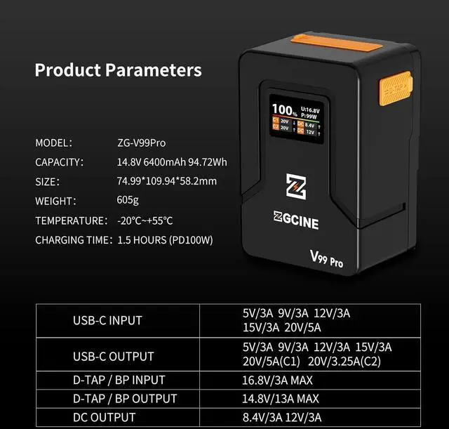 Unleash the full potential of your gear with the ZG-V99 Pro V-Mount Battery