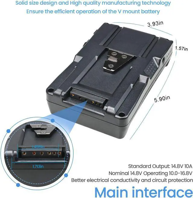 Compact, lightweight solution for powering cameras and monitor, the battery weight only about 1.37 lb. Intelligent charging technology, it only takes 3 hours to fully charge the battery from 0 using our smart charger. If you have a charger with a larger current output, the charge time will be shorter. Built-in circuit protection ensures both safety and stability (over charging, short circuit, high temperature, and surge protection)