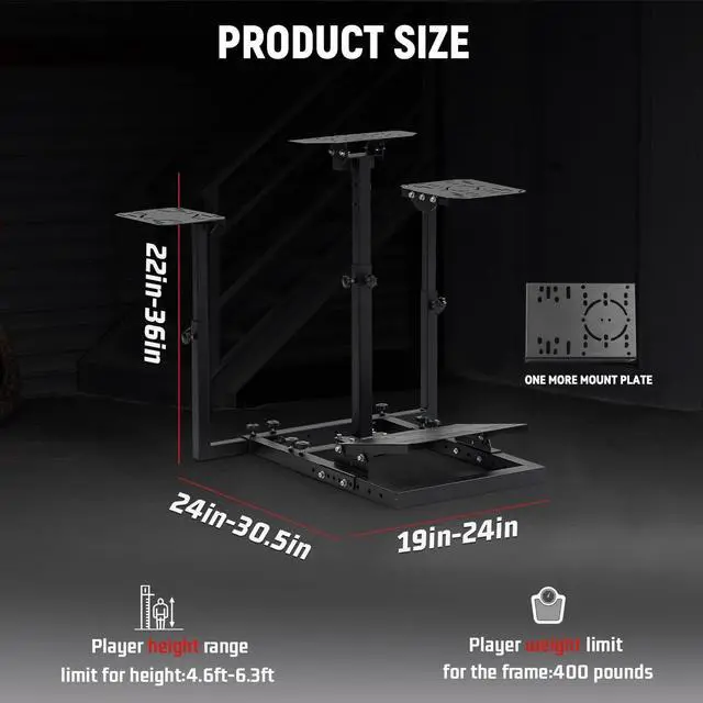 Adjustable The height of the racing wheel frame can be adjusted: 22.83"-36.22", the width of the bracket can be adjusted: 23.6"-30.7", the pedal angle can be adjusted: 0°-15°, the steering wheel angle: 0°-15-30 degree