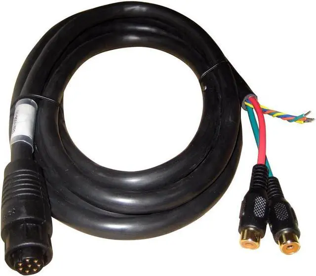 NSE/NSS Video/Comms Cable, MFG# 000-0129-001, 8 pin connector to bare wires for NMEA, and 2 RCA female for video input. 6.5 ft (2 m) in length.