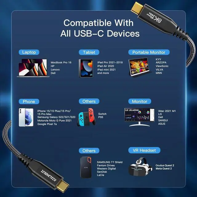 Broad compatibilityThe USB C video cable works seamlessly with all Thunderbolt/Type-C devices and compatible with Thunderbolt 4/3, USB 3.2, USB 3.1, for monitor, laptop, smartphones, tablets, switch, docking station, external SSD, eGPU etc.