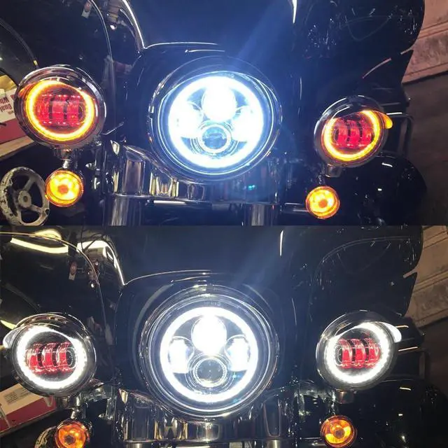 Package include: 1 pcs 7 inch led headlight+2 pcs 4.5 inch fog light. (Now our headlight only come with white halo, no other color halo of headlight availble anymore)