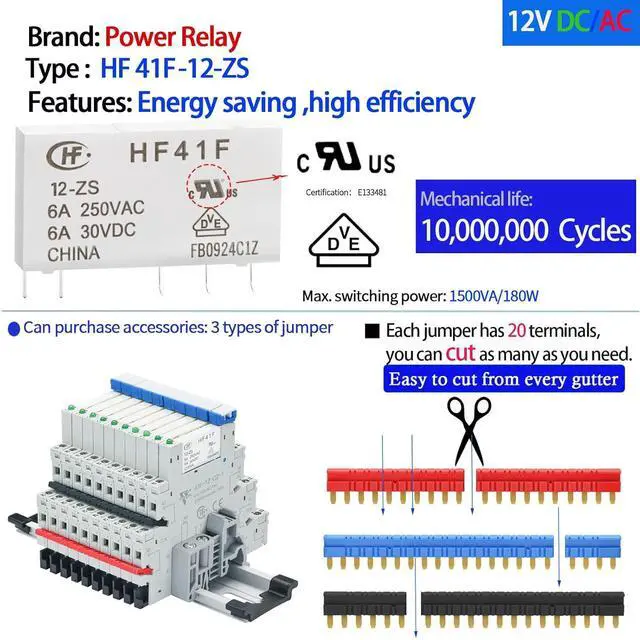PackagePackage Content: 10× Power Relay; 10× Relay Socket Base; 2x 140mm Length DIN Rail; 3×Jumper; 4×Fixing Clip; 2×Separator; 4×Screw.