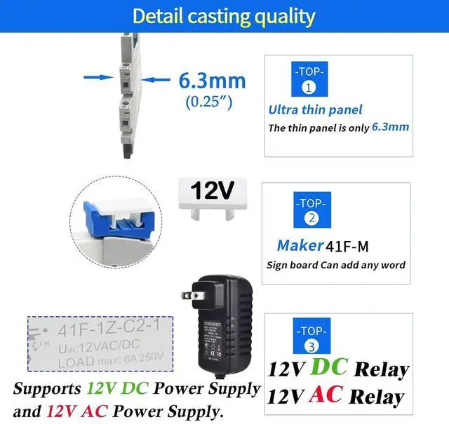 Relay Input voltage: 12V AC/DC; Plug-and-play design allows the relay and base to be easily separated for convenient replacement, enhancing user-friendliness.