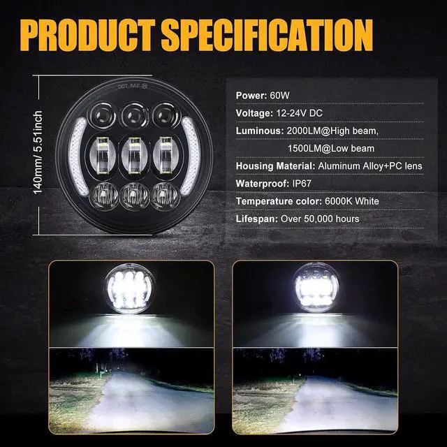 Package Include: 5.75 Inch led headlight replaces original halogen and HID headlight, Maintnce Free;