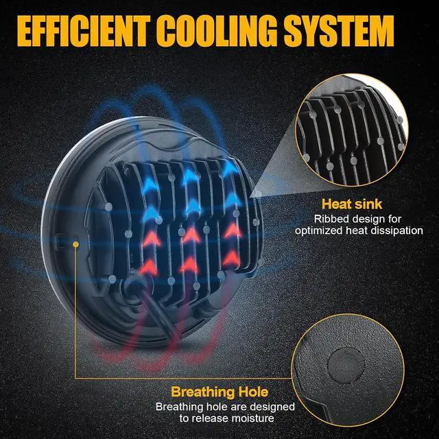 IP67: Our LED motorcycle headlight offers exceptional durability, resisting scratches and corrosion. Boasting an IP67 waterproof and dustproof rating, it fearlessly withstands heavy rain, muddy terrains, and dusty roads, providing reliable illumination for all your rides, whether its a rugged off - road adventure or a daily commute. Heat sink design for efficient cooling, extends the lifespan over 80000hrs