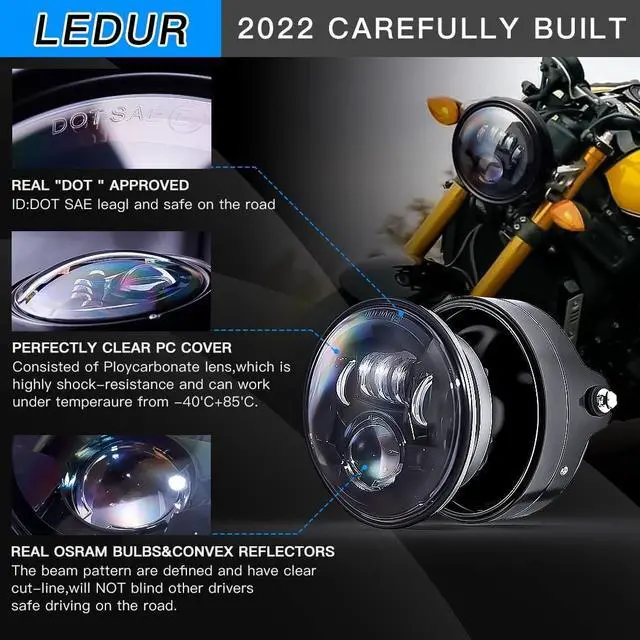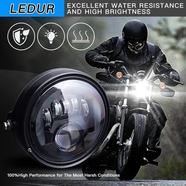 [APPLICATION] 7inch Motorcycle LED Headlight Assembly compatible with Honda Shadow/CB400/CB1300/CB250/CB600F/CB919 Hornet. 7in round led headlight Fits for Harley FXWG/FXDWG/and FXST models[with 7" LED Headlight], 2004-2014 Sportster XL883/XL120. Universal and widely for Suzuki/Yamaha/Kawasaki/Buell Blast/Triumph/Norton/Ducatiect, ect Custom Chopper, Bobber, Cafe Cafe, Street Tracker, Scrambler or any Motorcycles deploy with 34mm~42mm fork tubes.