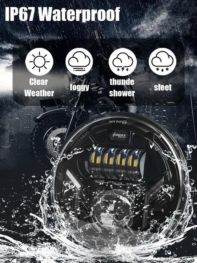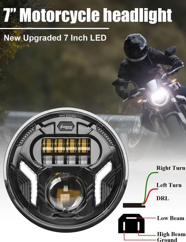 Package Include: 1 x 7inch Headlight with Motorcycle Headlight Housing + 1 x Motorcycle Headlight Mount Brackets + Installation Instruction
