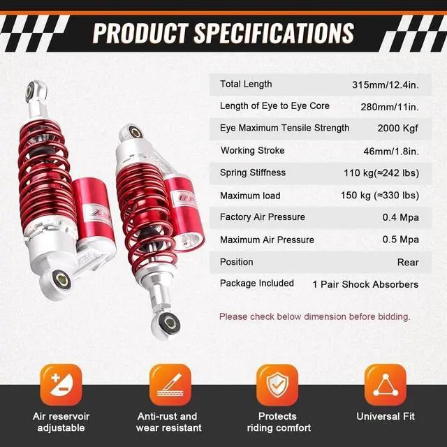 Exceptional Durability and PerformanceRfy Shocks Crafted with solid steel and aluminum alloy, this shock absorber ensures long-lasting reliability and s your riding experience with superior shock absorption.