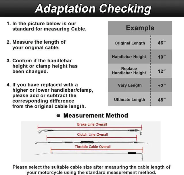 Note: Some models might need a longer cable kit than the usual length. That's the cause of how their cables need to wind around or other needs. Please check the detailed fitment list and product size before purchasing.