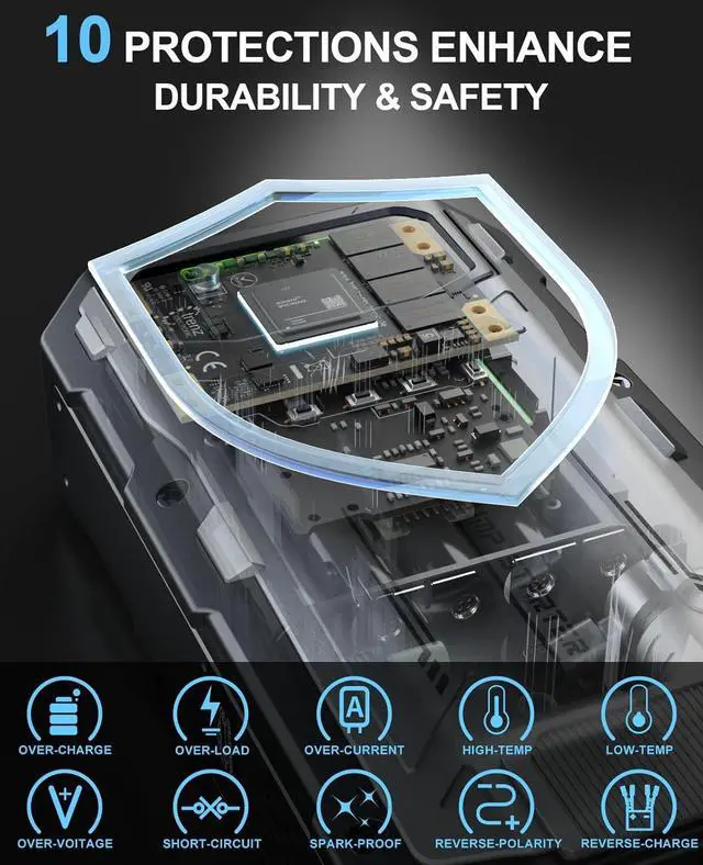 SAFETY PROTECTION: Built to protect, the jumper starter with 10 advanced protections including spark-proof, reverse polarity, short-circuit protection etc to offer worry-free operation, advanced battery tech ensures long-life reliability for years of trusted service