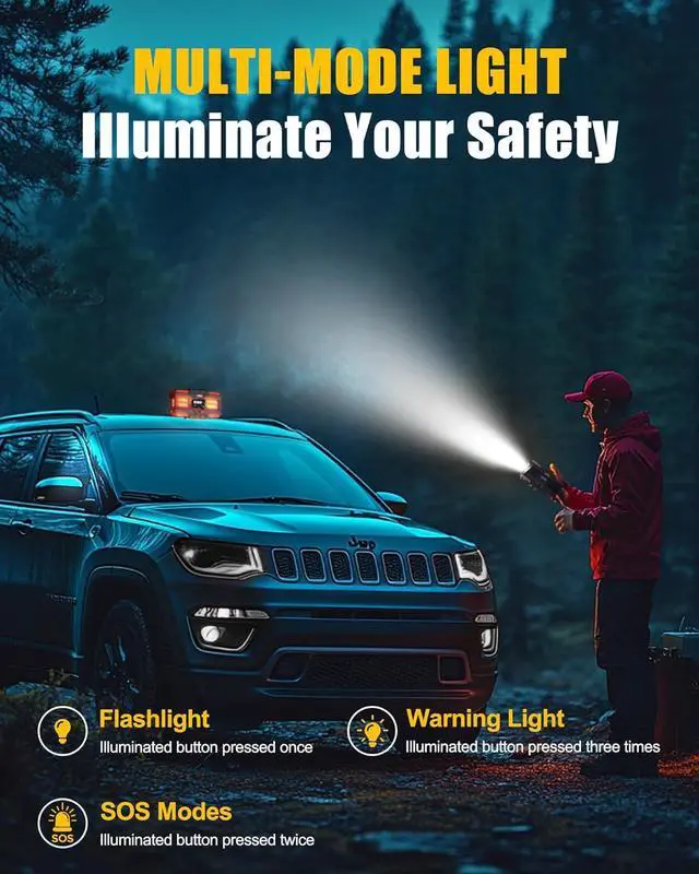 8.7" 2-in-1 Smart DisplayCombines a smart diagnostic screen with dual warning light. The LCD display provides real-time battery monitoring and operational diagnostics, while two ultra-bright red flashing lights as emergency warning light to replace Reflective Triangles during roadside emergencies.