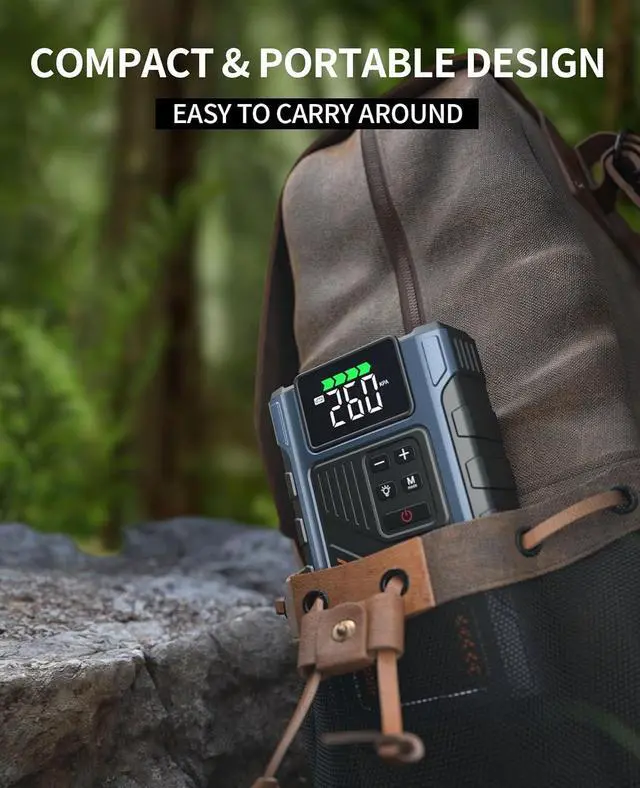 THE FULL IN ONE SET FOR ROADTRIP- The compact battery jump pack is very useful for anyone who drives regularly to easily deal dead battery or tired tire! Keep the jump starter in the trunk in advance not when you're stuck by the roadside. Full package includes 1* jump starter, 1* smart jumper cable, 1* USB cable, 1* storage case, 1 * pump tube, 4* air nozzles, 1* user manual