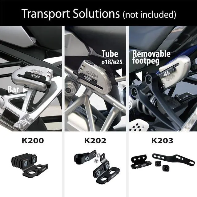 DESIGNED TO ENVOLVE TRANSPORT-READY: For over 15 years, the 32 has been continuously improved to anticipate real-world threats and meet riders needs. Optional K200, K202, and K203 mounts let you carry this motorcycle wheel lock securely and discreetly on your bike.