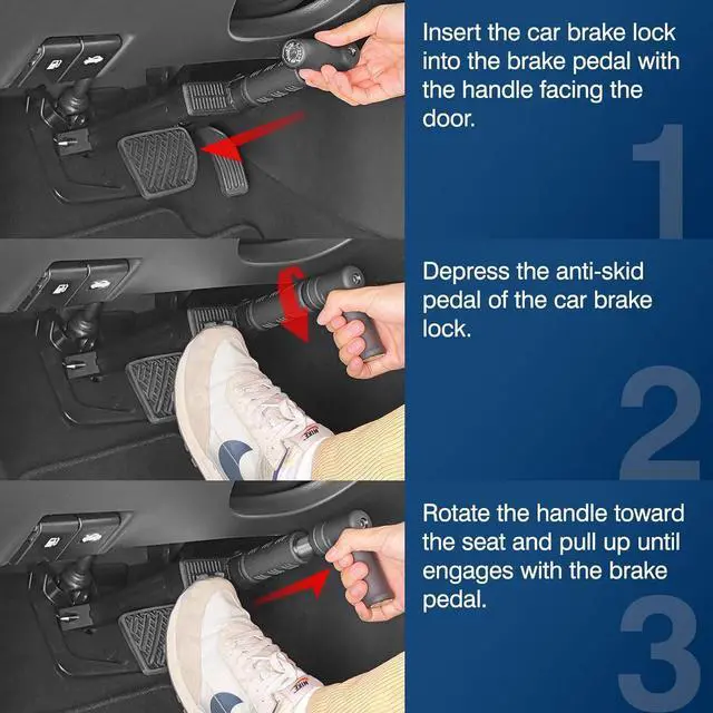 Note: For some vehicle models with smaller brake pedals, slight movement after locking is normal and does not affect the anti-theft performance.