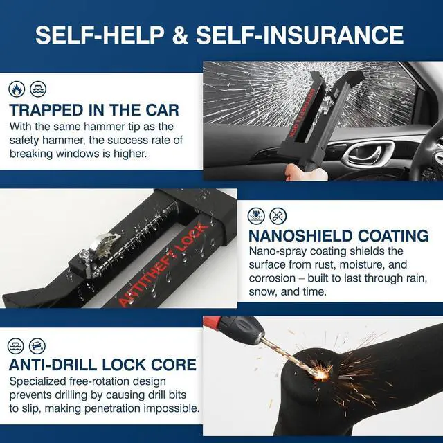 EASY TO GET CAR SECURITY- There is a detachable taper at the end of the car lock, which can be used as a broken window and self-defense tool. Each car anti-theft device is equipped with three keys, and other buyers cannot open your lock.