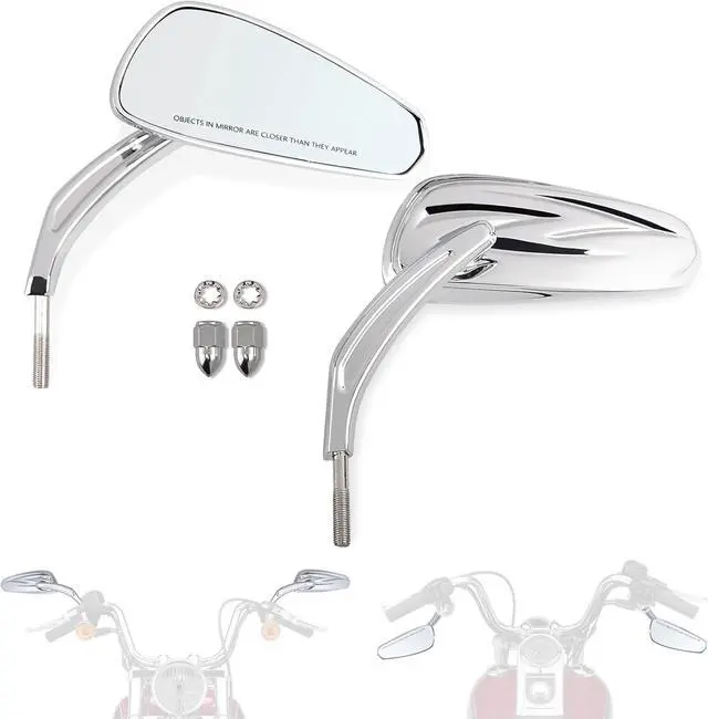 Handlebar Mount Mirrors, Motorcycle Rearview mirrors for 1982-2025 Harley Models, for CVO Dyna Touring Electra Glide Road Glide Road King Softail Street Glide Sportster 1200 883, Chrome