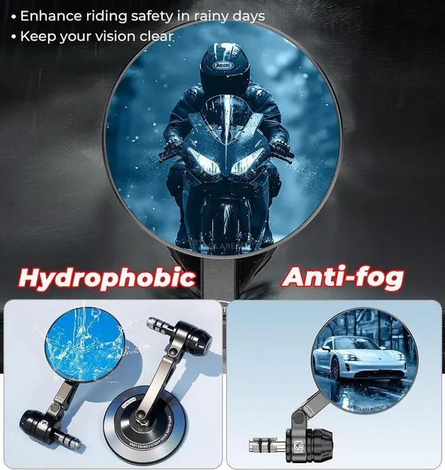 Anti-Glare Blue Lenses: The motorcycle bar end mirrors using high-definition optical glass lenses, night riding anti-distce far light, glare is not dazzling, long time to see without fainting, and s visual clarity for safer night riding