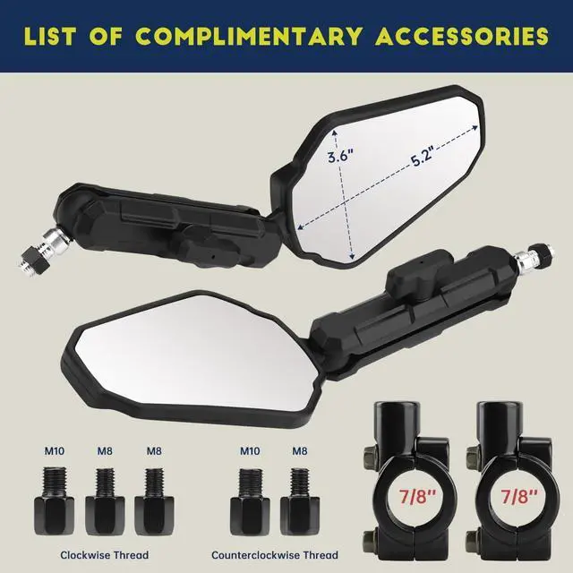 The mirror is made of aluminum link mirror rod, high impact resistant ABS mirror shell, convex HD anti-burst glass, well-made and durable.