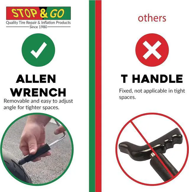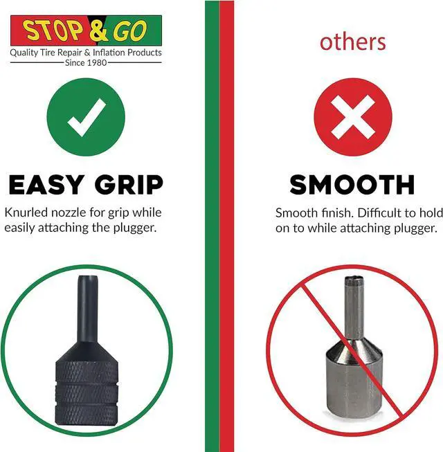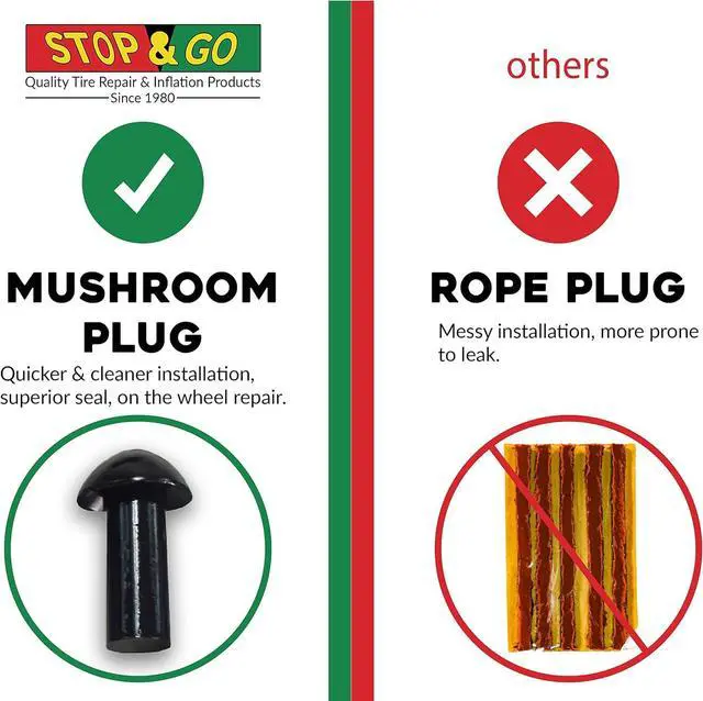 Mushroom Plug Technology: Unlike traditional rope plugs, the mushroom-shaped plugs create a secure, airtight seal against the tires inner wall, ensuring a durable repair that can last for the tires remaining lifespan in many cases.
