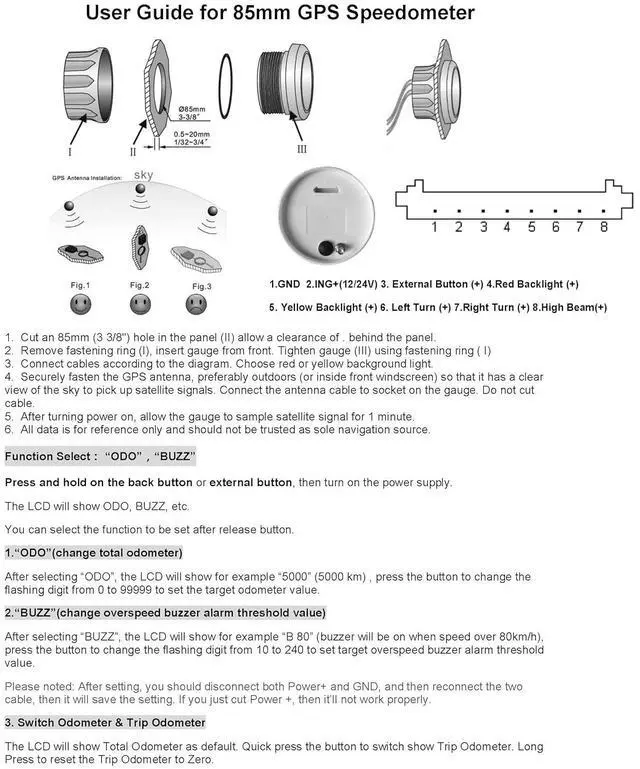 OverSpeed Buzzer Alarm, Total Mileage Adjustable, Mileage