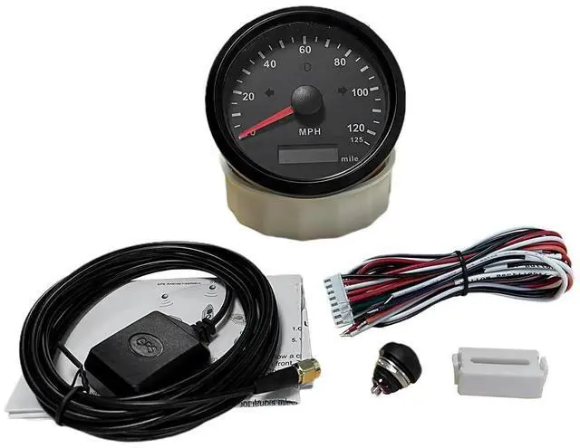 Securely fasten GPS antenna, preferably outdoors (or inside front windscreen) so that it has a clear view of the sky to pick up satellite signal. Connect the antenna cable to socket in the back of the gauge. Do not cut cable