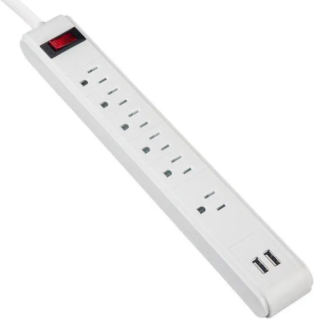 6 Outlet Power Strip Surge Protector with 2 USB 3ft 300J 15A 125V