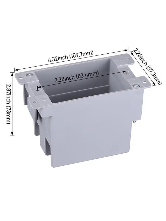 This electrical box is perfect for home improvement and retrofit projects, featuring four integrated wire holes that accommodate various wiring requirements. It provides the flexibility to customize your home renovation. With a length of 4-5/16 inches, width of 2-1/4 inches, and depth of 2-7/8 inches, this device box is specifically designed for use with standard devices and switches that have 3-1/4" screws spaced.
