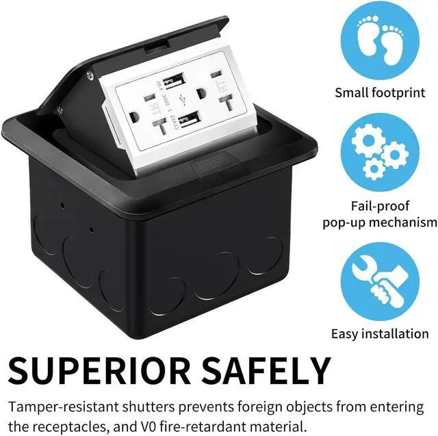 Product composition: 20A Tamper-Resistant Receptacle Outlet+5V/4.8A 2* USB ports+ steel box .Adding dampers makes the product open slowly and more elegantly. Stainless steel surface and white sockets.