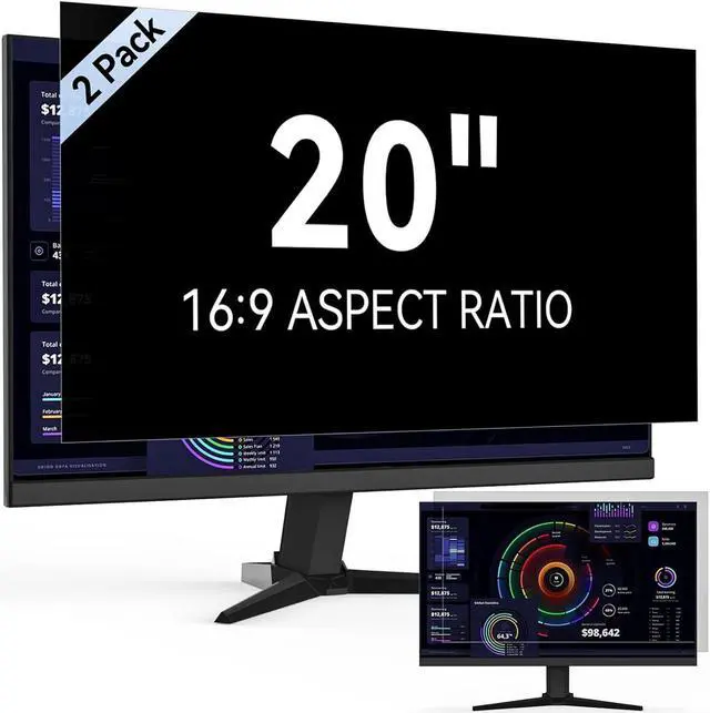Our 20 inch privacy screen for monitor has 2 uniquely designed installation methods: Permanent installation- double sided adhesive tape. Suitable for all computers with a screen aspect ratio of 16:9 and a size of 20 inches. Removable installation- slide mount tab. Suitable for computer with raised frame, you can slide the filter in and out of the screen as needed, it provide a quick and easy way to remove your monitor privacy filter when you don't need.